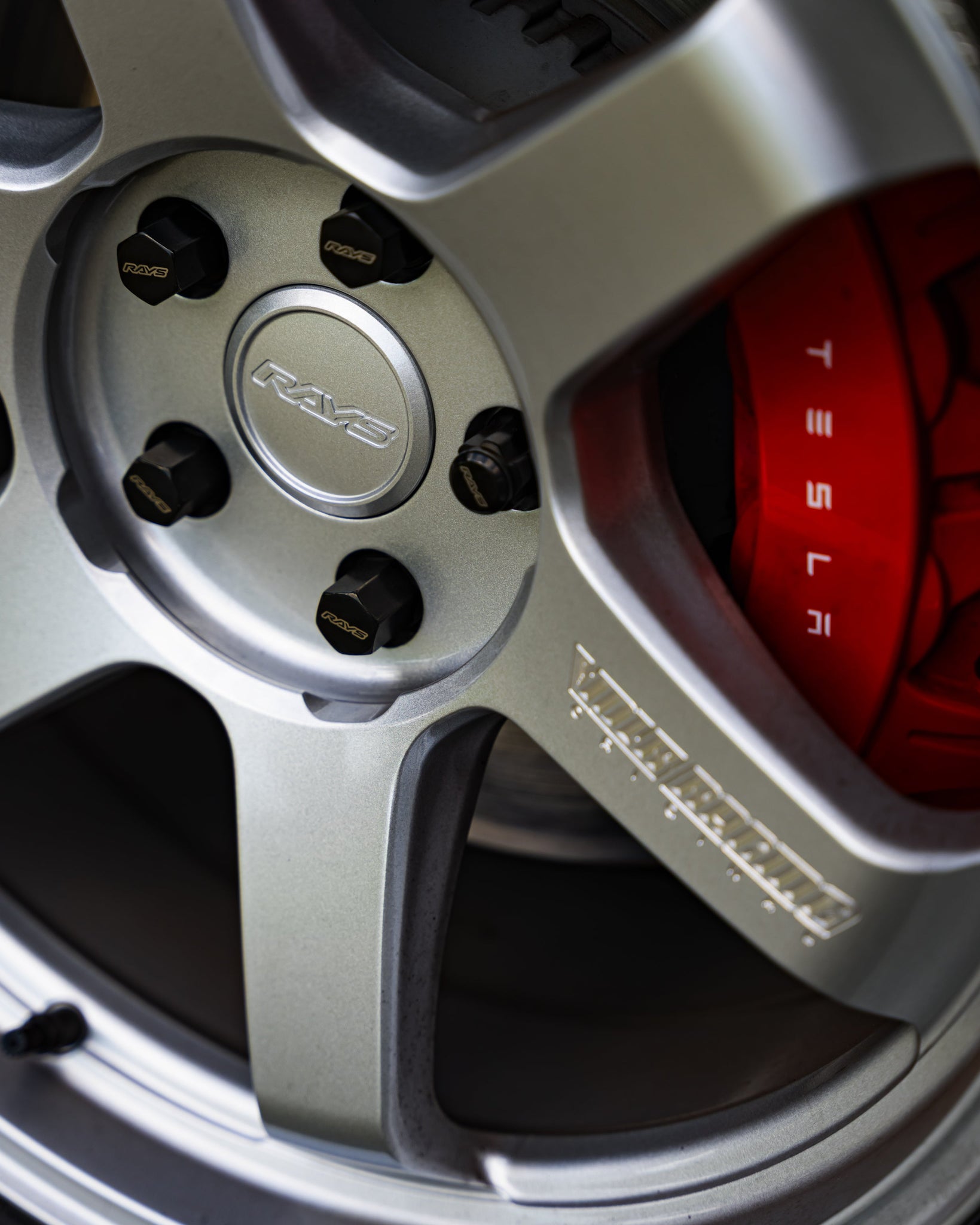 Direct plug & play by RAYS for ALL Model 3 and Model Y variants. M14 lug studs and Model 3 Performance stepped-lip hubs ready. No drilling or hub-centric rings required!